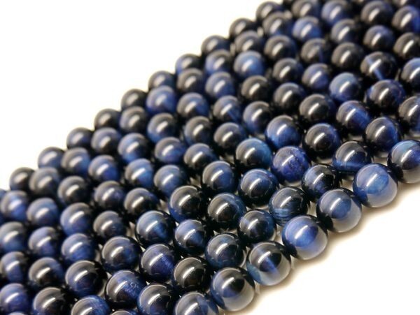 - [EasternStar] 海外発送 7A ブルー タイガーアイ Blue Tiger Eye 虎目石 虎眼石 玉サイズ16mm 1連売り 長さ約40cm