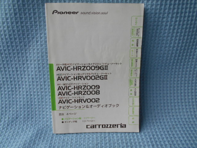 > カロッツェリア AVIC-HRZ009GⅡ HRV002GⅡ HRZ008 HRV002 取説