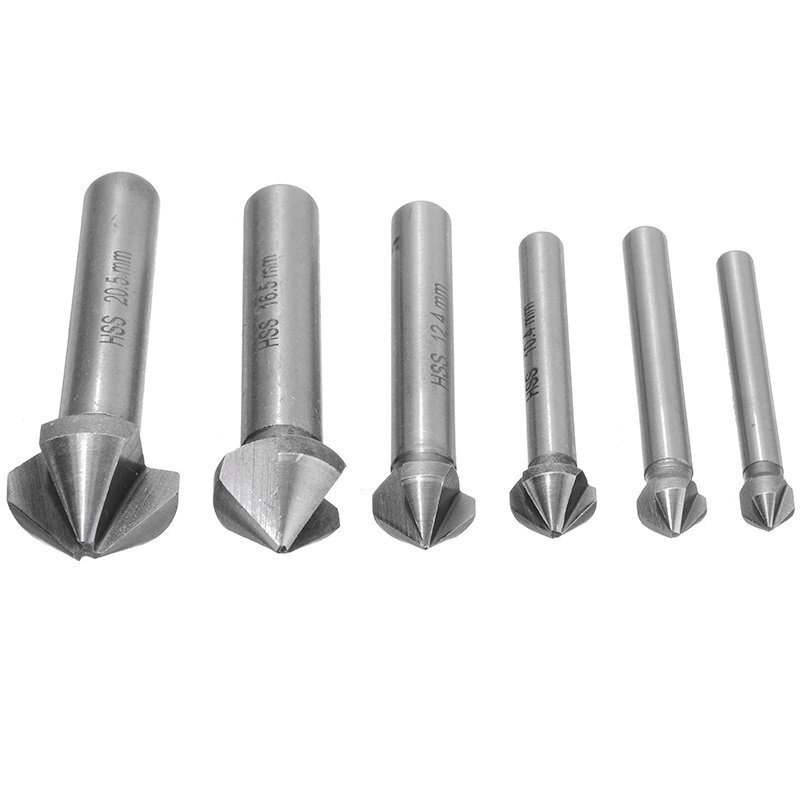 - 6個セット 90度 皿 HSS ドリル ビット金属 ビット ▲ 鋼4241 面取り面カッタ取りー 6.3-20.5 ミリメートル 加工 木工 皿 HD187