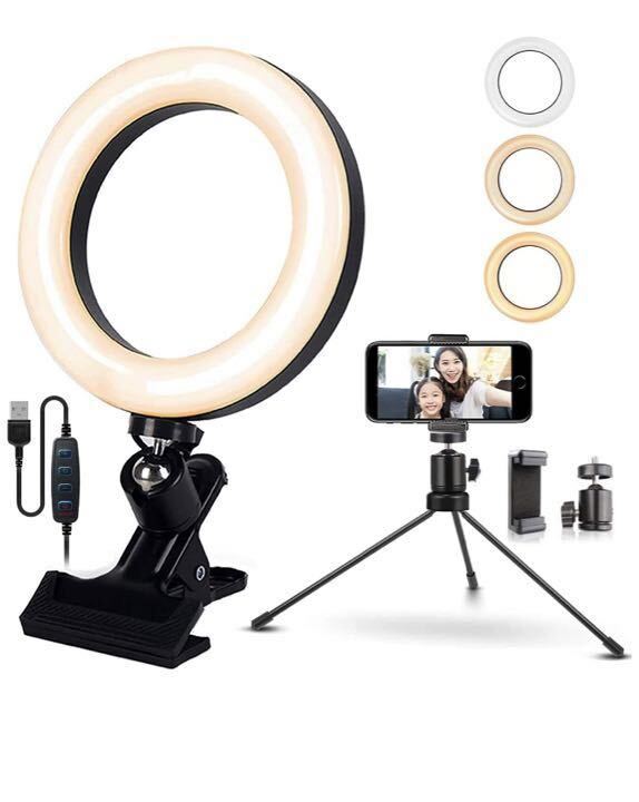 - リングライト 6.3インチ 5-in-1多機能 自撮りライト 高輝度 3色モード
