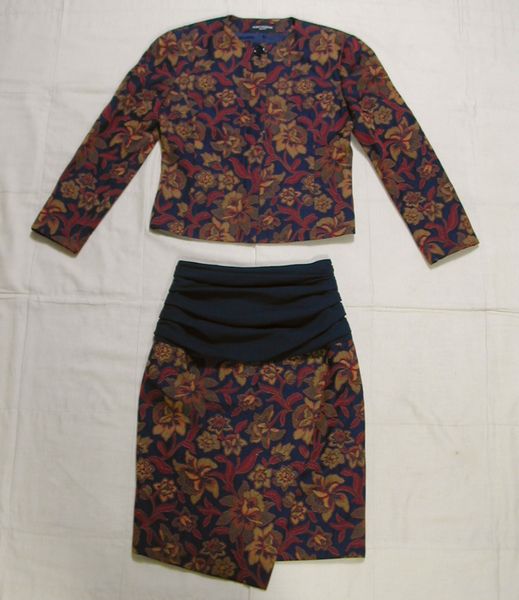 - ■美品:花の織柄スカートスーツ イタリー製生地 日本製42 DmR77