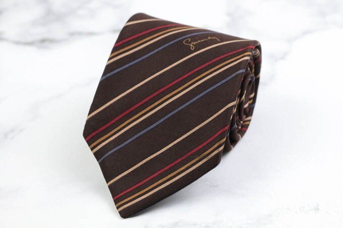 - ジバンシィ シルク ストライプ柄 ロゴマーク ブランド ネクタイ メンズ ブラウン GIVENCHY ジバンシー