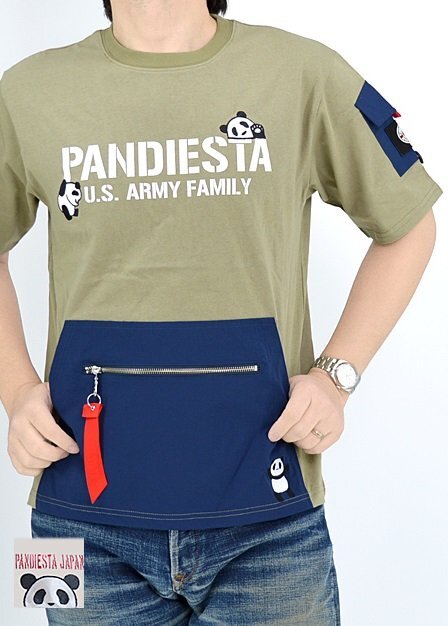 > PDJ-ARMYミリタリーポケット半袖Tシャツ◆PANDIESTA JAPAN カーキXXLサイズ 554950 パンディエスタジャパン パンダ ユニセックス