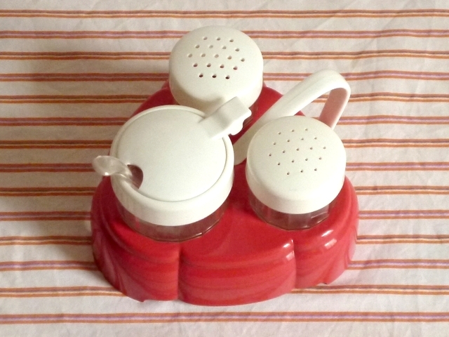 > ●○プラスチック製 卓上調味料入れセット 白×ピンク 塩コショウマスタード○●ドイツレトロポップビンテージアンティーク KI124