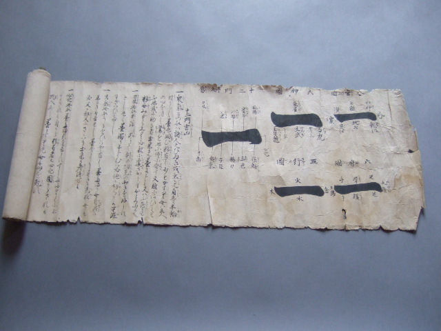 - 江戸期肉筆陰陽師文書秘伝書天保九年(1838年)「十二門吉凶」「墨色考」呪術書呪い風水陰陽道北斗七星信仰陰陽博士水晶軸?巻物和書古文書