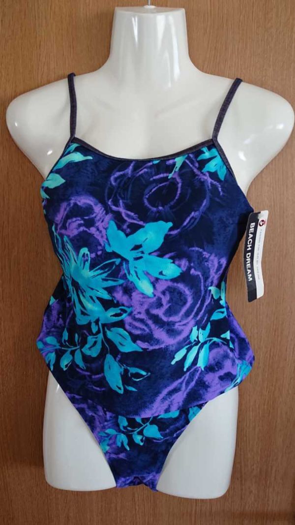 - ★BEACH DREAM★タグ付き未使用★紺×黒☆花柄のタンキニ水着2点セット★11L★(株)ドリーム★