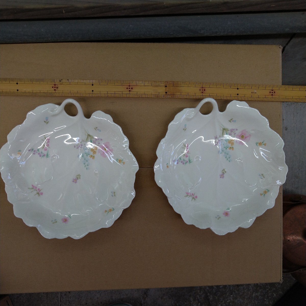 - ナルミ 葉っぱ型プレート 花柄 2枚セット 中古