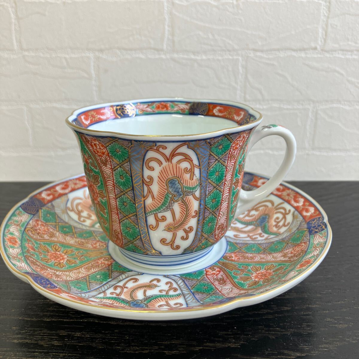 - 良品 弥左ヱ門窯 珈琲碗皿 錦山水 一客 有田焼 共箱なし コーヒーカップ 来客用に 食器 伝統工芸品 インテリア 縁起物 陶器 定価¥12,650