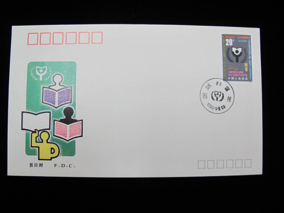 - 中国切手 FDC 1990年 J171 国際識字年 1種完