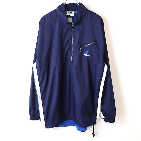 > 90s adidas アディダス ハーフジップ ナイロン プルオーバー ジャケット(メンズ L)ネイビー ヴィンテージ
