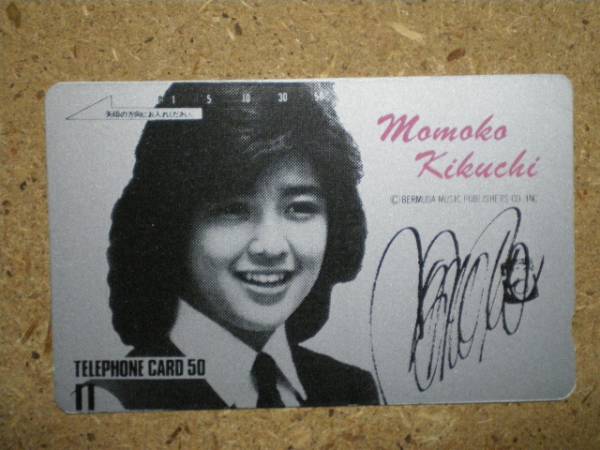 - kikut・菊池桃子 サイン印刷大 図柄左より 切込右下 銀箔 テレカ