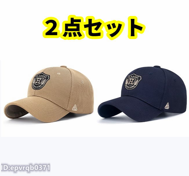 > 2点セット※新品 野球帽 キャップ メンズ キャスケット 刺繍 帽子 フリーサイズ アウトドア 調節可能 カーキ/ネイビー