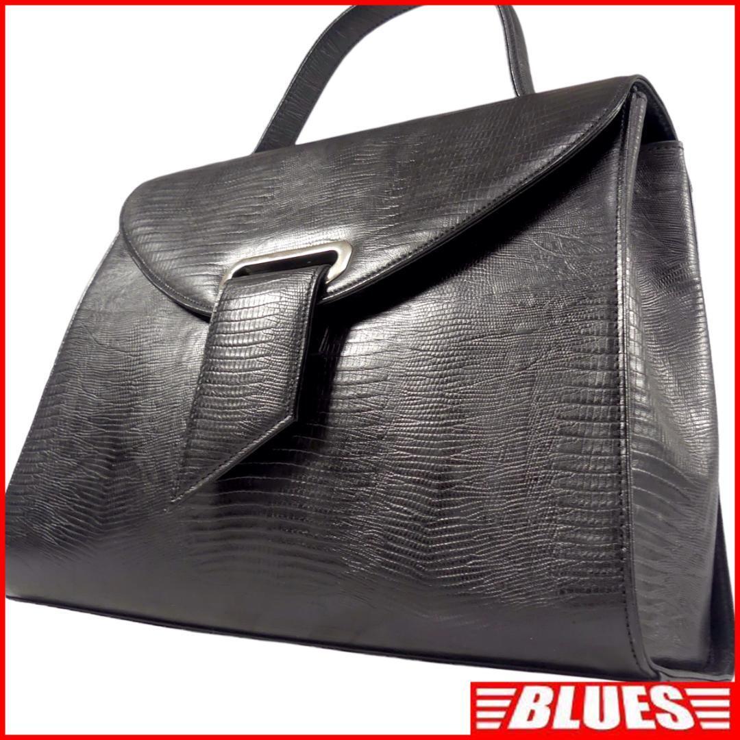 - 即決★AUNIS★オールレザーハンドバッグ オーニス 黒 クロコ型押し 本革 手提げバッグ 本皮 旅行 カバン 出張 鞄