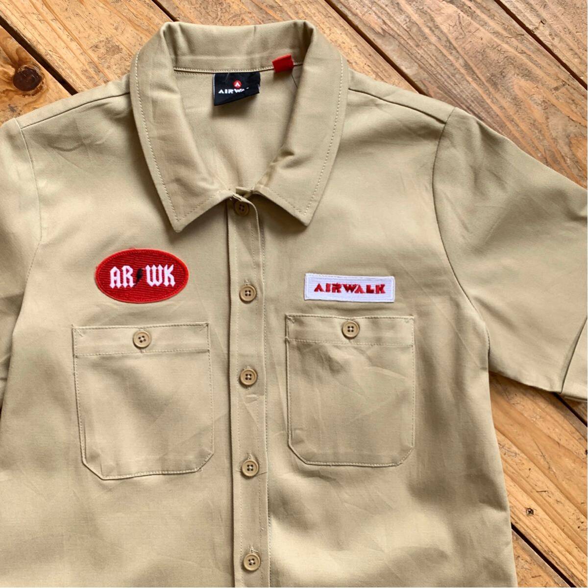 > 新品 AIRWALK エアウォーク ワンピースシャツ レディース Mサイズ カーキ スポーツ スケボー BMX カジュアル 襟付 タグ付き未使用品 T2410