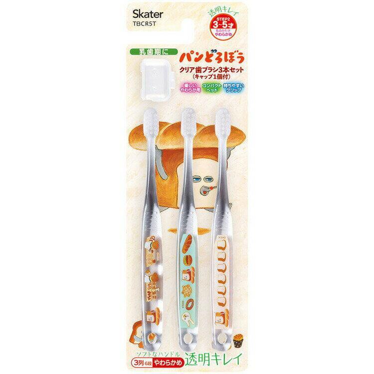 - パンどろぼう クリア子ども歯ブラシ 3本セット 園児用 子供 子ども キッズ キャラクター スケーター