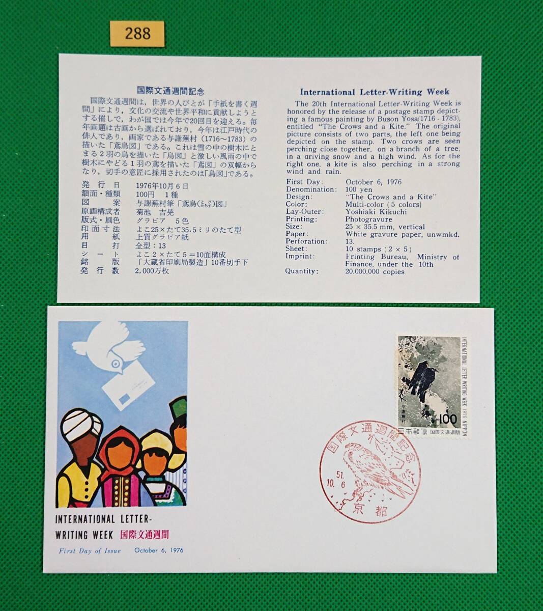 - FDC/国際文通週間/鳶鳥図(与謝蕪村)/初日印/京都記念印/NCC版/解説書有り/1976年10月6日/初日カバー/№288