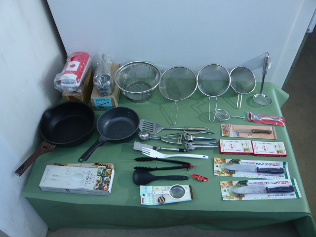 - B525◆厨房用品 ポテトマッジャー ザル、かす揚げ フライパン 包丁 他 まとめ 27点セット◆未使用、中古◆L