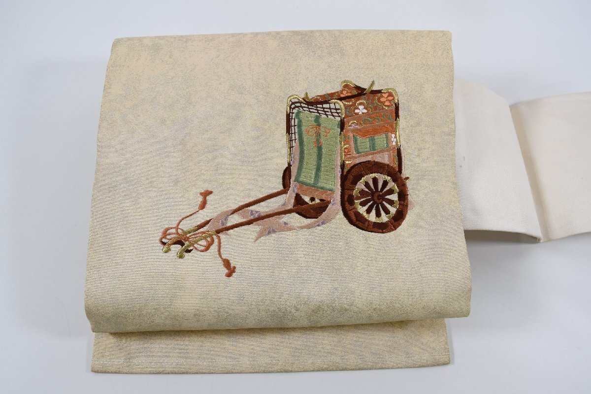 - 名古屋帯 御所車 刺繍 箱 帯丈370cm ★着物屋 ne-9298 桜庭呉服店