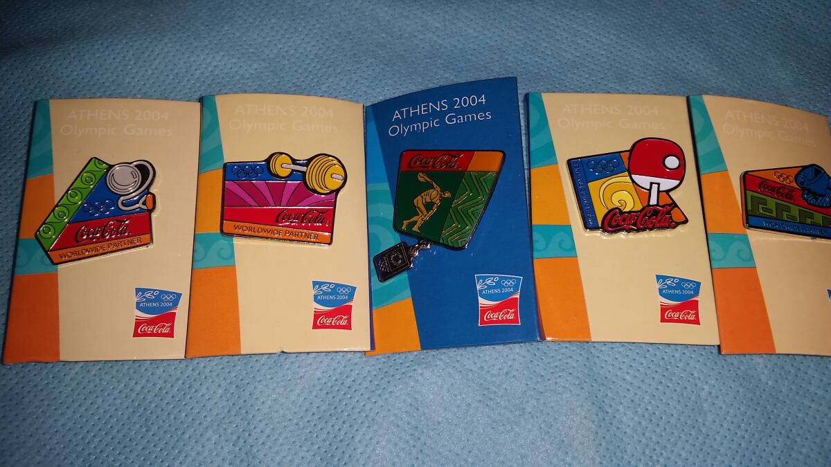 > ピンバッジ:非売品 Coca-Cola コカコーラ 2004 アトランタオリンピック トリビア 5種 ピンズ 当時物 未開封 2FB2/オクパナ