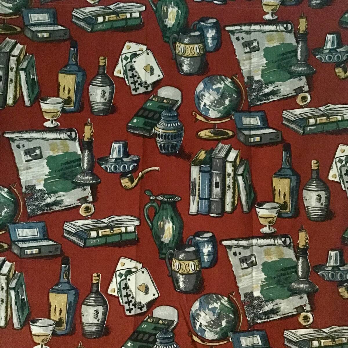 > 40s 50s フレンチ Vintage Mid-Century カーテン レトロ アート プリント ネップ入 平織り 生地 ファブリック テキスタイル / LEVIS 501XX