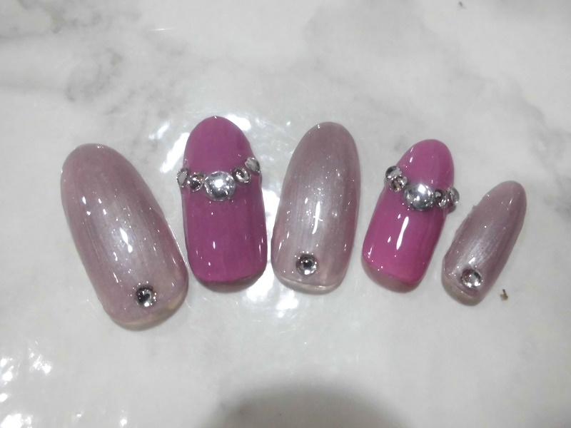 - ・(定型外orクリックポスト発送込み) パープル系2色のワンカラーにストーンでネイルチップ ジェル使用作品