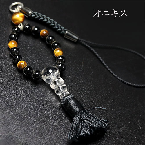 - お守り ミニ念珠 ストラップ (オニキス)1点 〔s30-6〕