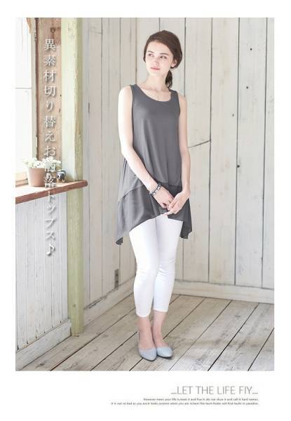 - ★大人キレイ系★シフォン・アシンメ・ヒラヒラ★丈長め・Aラインタンクチュニック★M