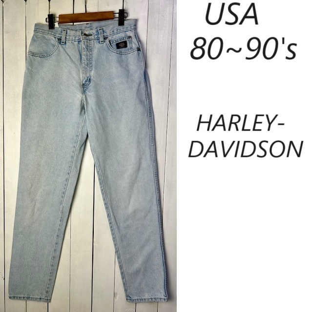 - USA古着 80s~90s USA製 ハーレーダビッドソン デニムパンツ 8 フェードブルー オールド ヴィンテージ HARLEY-DAVIDSON ●213