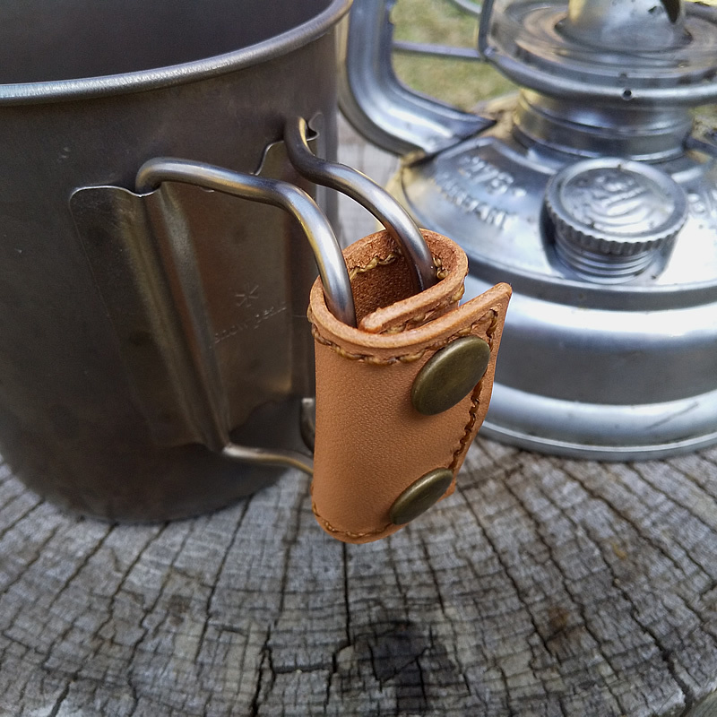 - 本革 スノーピーク(snow peak) チタンシングルマグ 450ml,600ml用 ハンドルカバー キャメルxブラウン ヌメ革