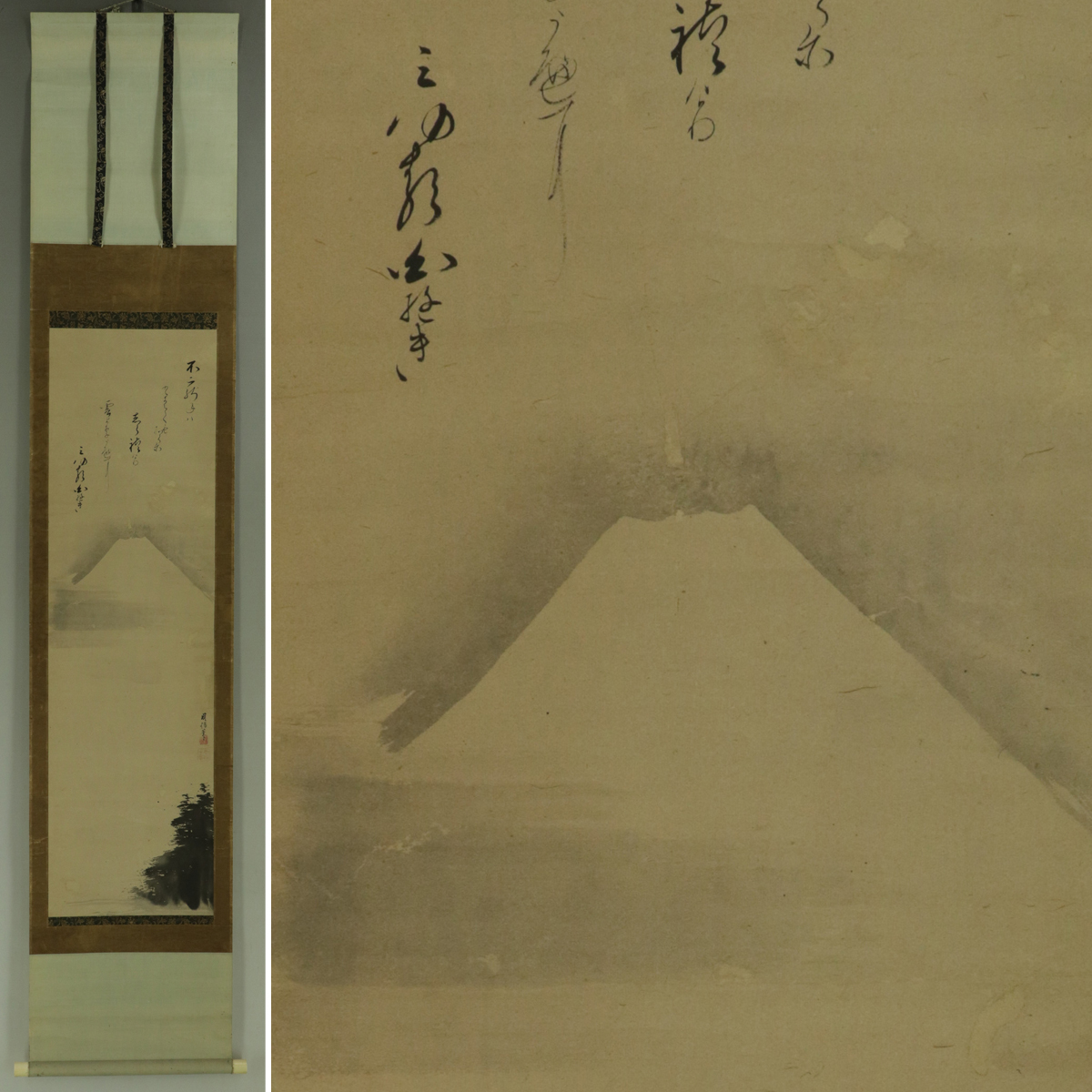 - 【模写】狩野周信【富士之図】◆紙本◆合箱◆掛軸 t07059