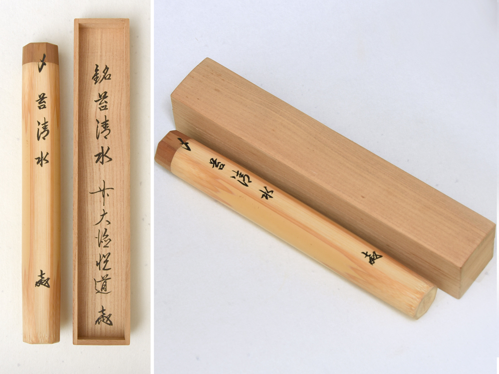 - 前大徳寺 高橋悦道(造)茶杓 銘「苔清水」共筒 共箱 茶道具 木工芸 美品 明星寺 z7077o