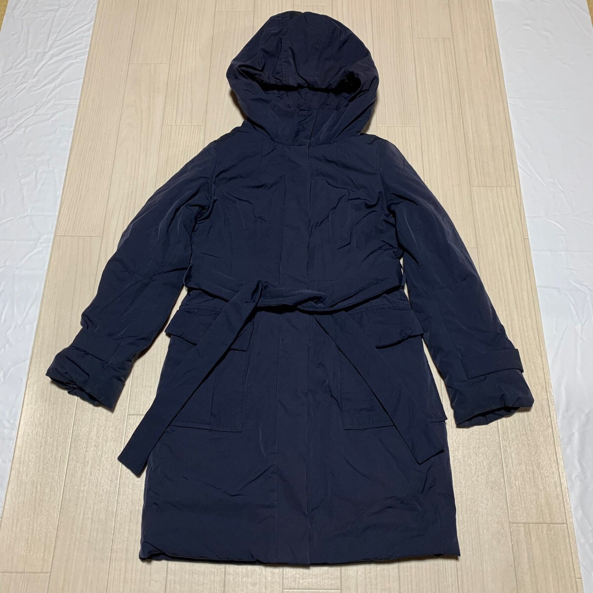 - PLST プラステ ダウンコート フード ベルト ジップアップ アウター ひざ丈 レディース ネイビー サイズ0