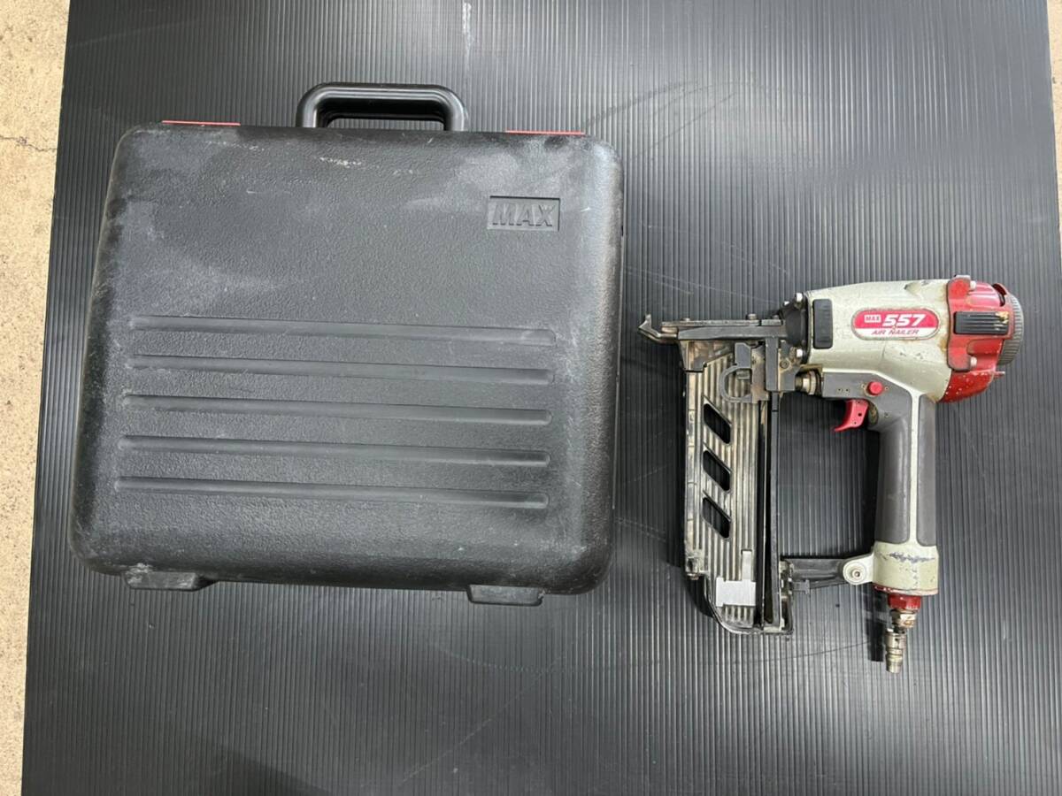 > 100*1FK★MAX マックス エア針打機 エアネイラ TA-557/957Tフロア ケース付き 工具 エアーツール 中古