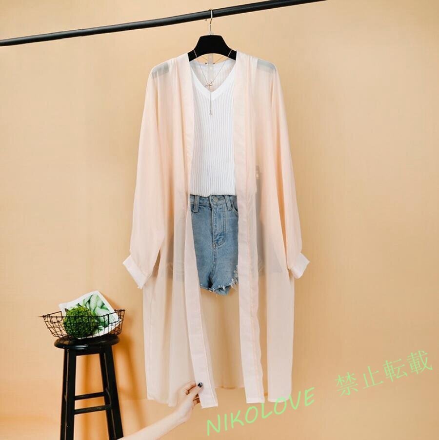 - LC223 春夏 レディース シフォン ロングカーディガン 長袖 ロング丈 UV対策 冷房対策 カーデ UVパーカー 杏