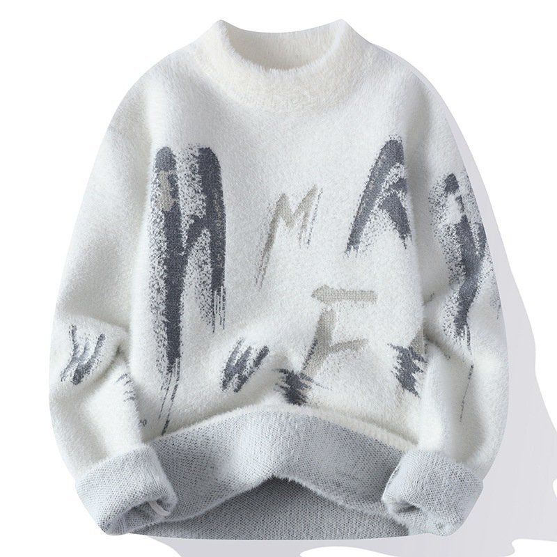 > セーター メンズセーター カシミヤウール混 ハイネック プルオーバー 長袖 トップス 柔らかい M~4XLサイズ選択可 ホワイト LD060