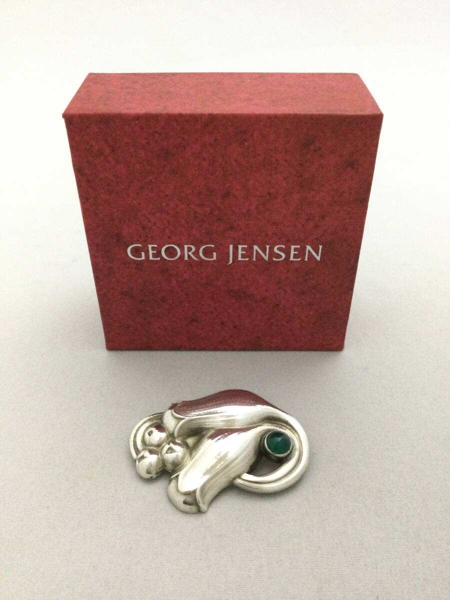 > GEORGE JENSEN ジョージジェンセン 100B グリーンアゲート ブローチ シルバー アクセサリー 925【C616964】