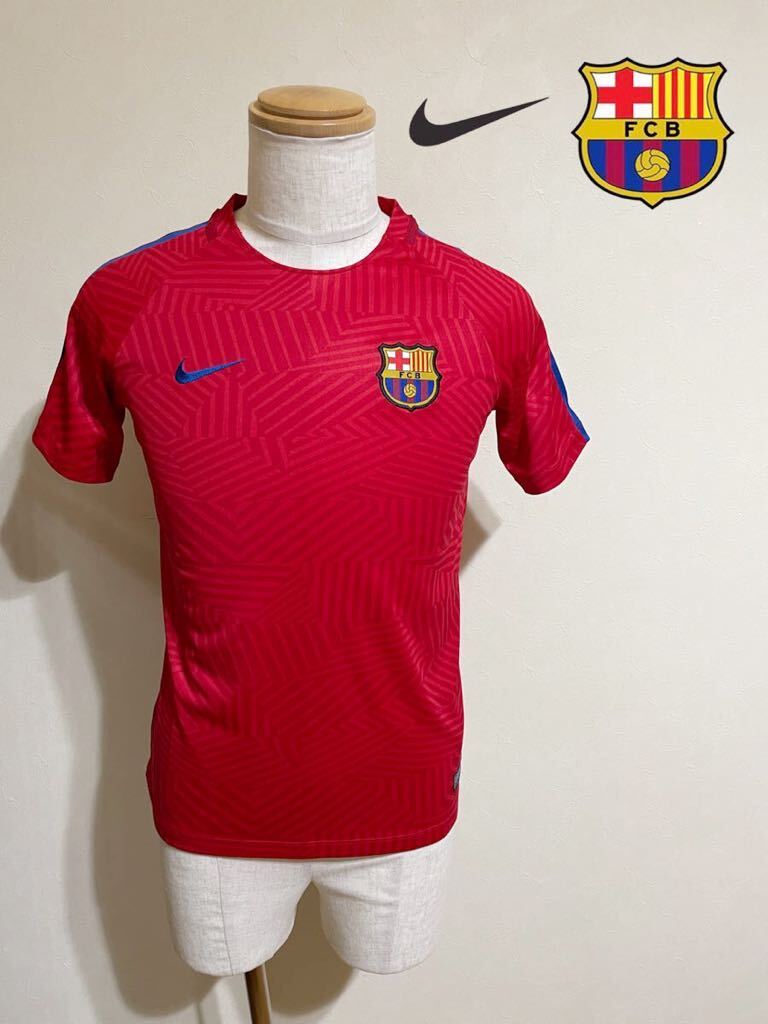 - 【美品】 FC BARCELONA ナイキ バルセロナ ユニフォーム 切替し トレーニング ウェア トップス ジュニアサイズL 半袖 赤 総柄 155/76