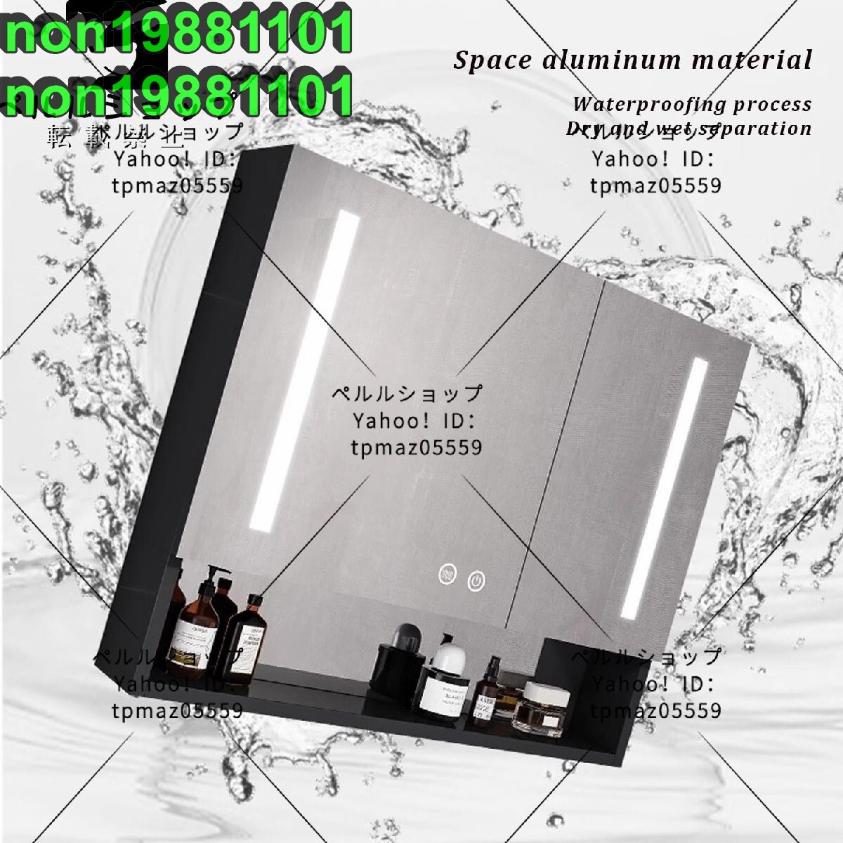 - 浴室キャビネット壁掛けミラー付き げバスルームキャビネット収納棚付き2ドアスマートバニティミラーキャビネット曇り止め付き 60*68*13cm