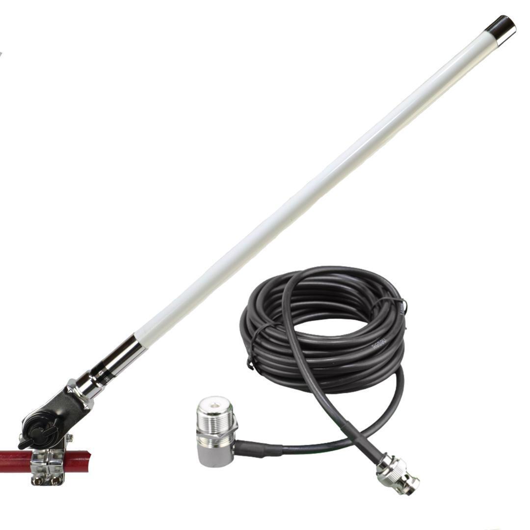 > 55cm ロングアンテナ(白)+ルーフトップ キャリアアンテナ基台(シルバー)RB-46+RG58(3D-2V相当)同軸ケーブル5m MJL-BNC【フリマ対応】