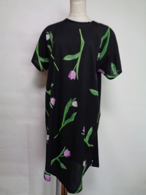 > 美品*ポールスミスPAUL*M*38*異素材カットソー*ロング丈カットソー*チュニック*チューリップ柄*花柄*半袖ロングカットソー*夏