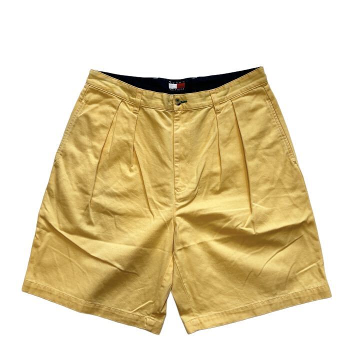 - 【90s】 TOMMY HILFIGER トミーヒルフィガー チノショーツ 短パン ハーフパンツ メンズ W35 黄/イエロー コットン ツータック 古着 USED