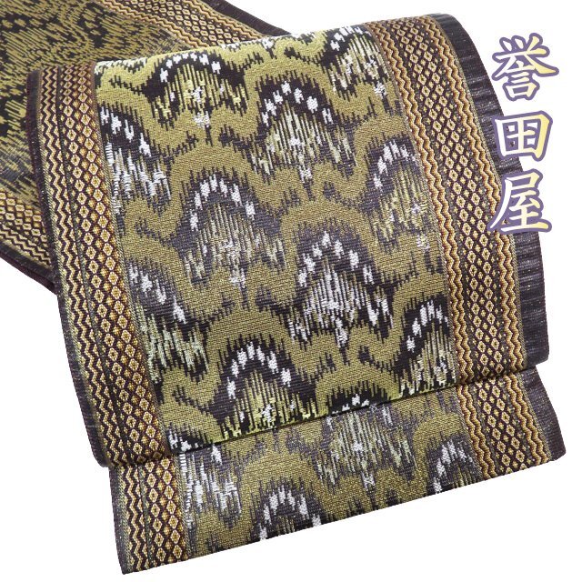 - 特選 袋帯 中古 リサイクル 正絹 フォーマル 仕立て上がり 六通 誉田屋源兵衛 太子間道 箔糸 金通し 焦茶色 金銀 きもの北條 A1010-10