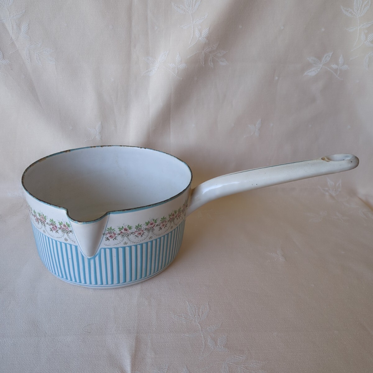 - フランスアンティーク ホーロー片手鍋 BB社 ローズガーランド ホーロー 片手鍋 バラ