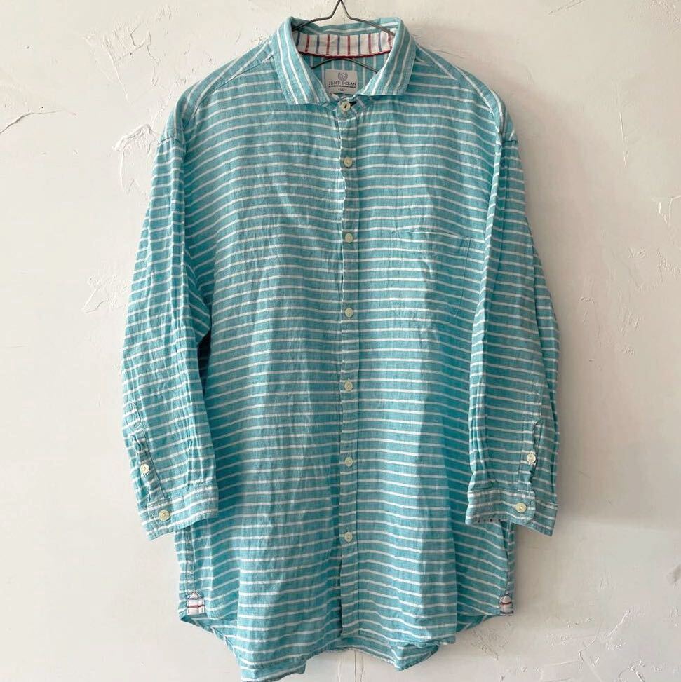 - SENT OCEAN 七分袖 ボーダーシャツ 麻 リネン55%コットン45% スモールカラーライトブルーにホワイトボーダー メンズ レディース古着 4