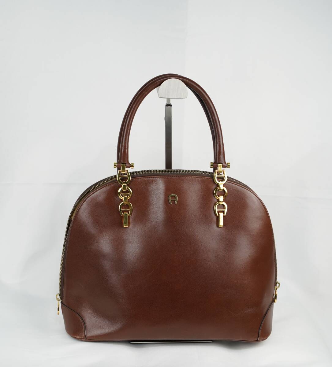 - 即決 AIGNER アイグナー イタリア製 ショルダーバッグ ハンドバッグ 牛革 茶 ブラウン 高品質