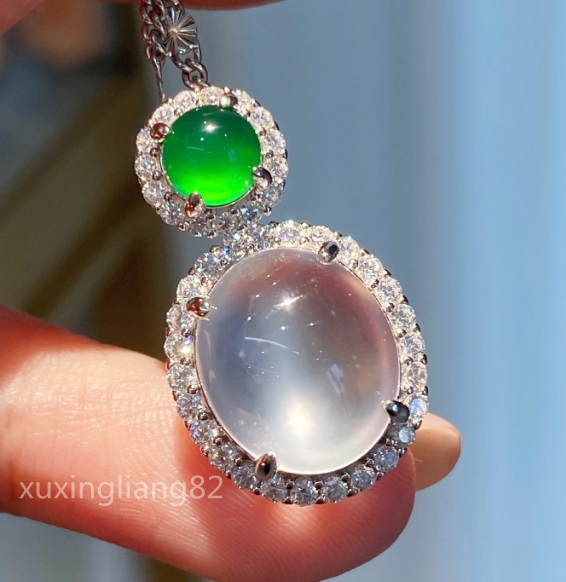 > 新品販売 天然緑玉髓 ヒスイ 透明瑪瑙 ペンダントトップ ネックレス ピカピカ ジルコン アクセサリー チェーン付き