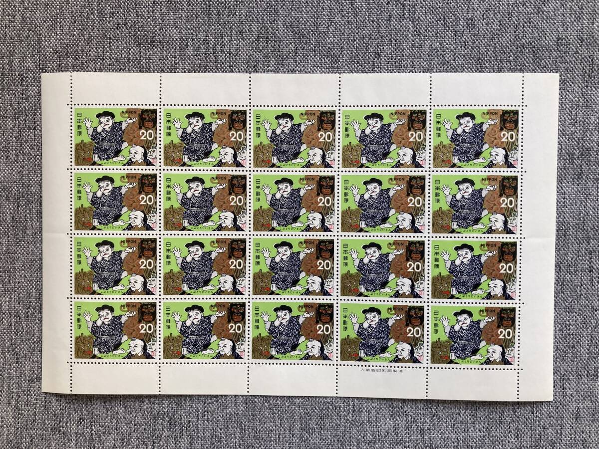 - ★未使用 昔ばなし シリーズ 第5集 こぶとりじいさん 踊り 1974年 昭和49年 切手シート 20円 20枚 日本郵便