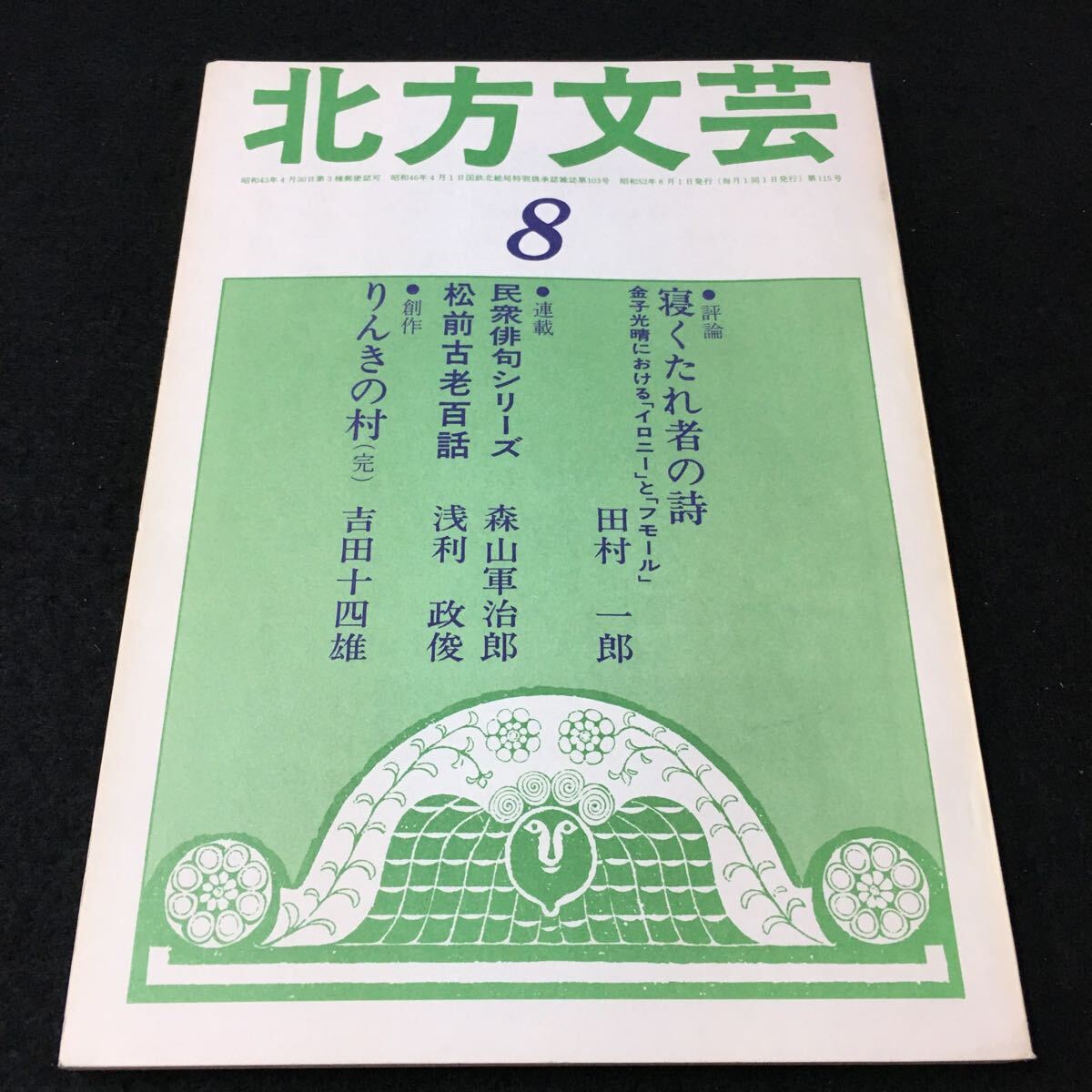 - M5h-106 北方文芸`77\8月号 ●評論 寝くたれ者の詩 金子光晴における(イロニー)と(フモール)田村 一郎 ●連載 民衆俳句シリーズ その他