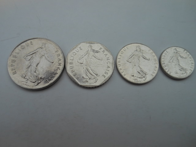 - ☆フランス 硬貨 5フラン 2フラン 1フラン 1/2フラン 美品 送料無料!☆