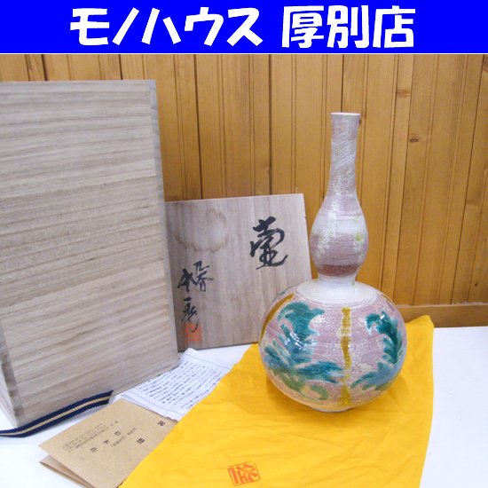 九谷焼 壷 松本佐一 桐箱付き 高さ300mm 陶器 松屋窯 松本陶房 共布有 骨董品 札幌市 厚別区